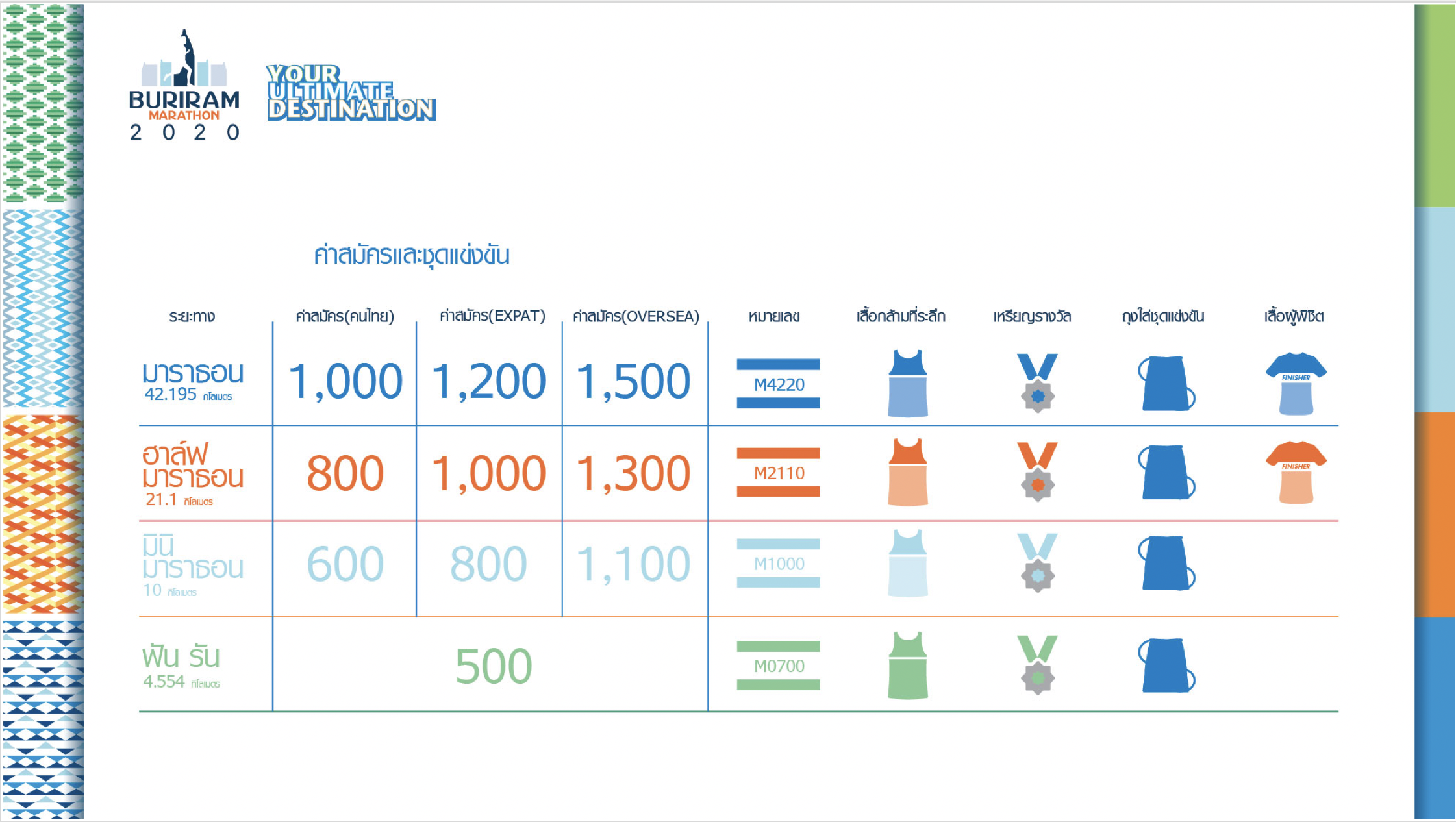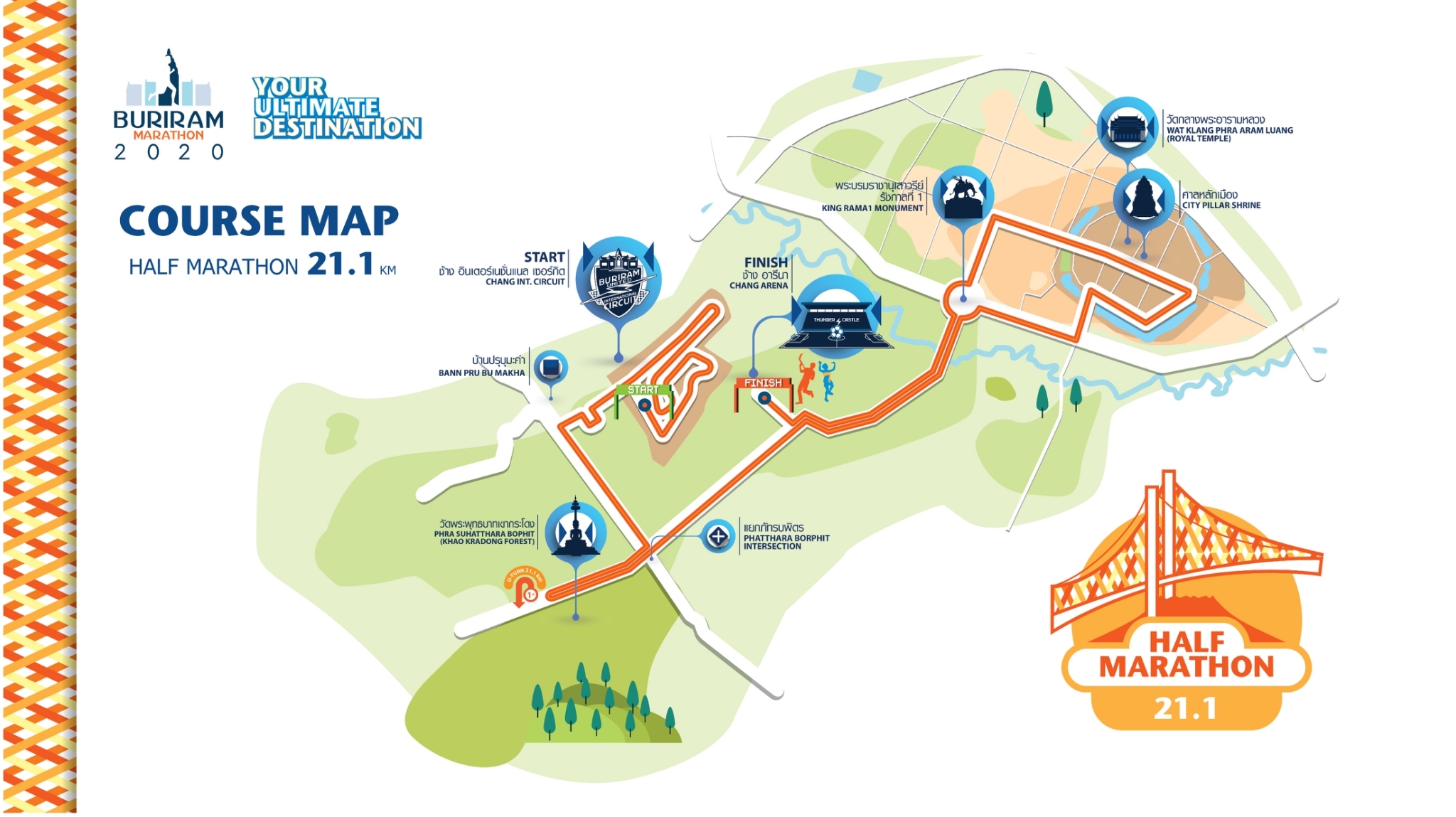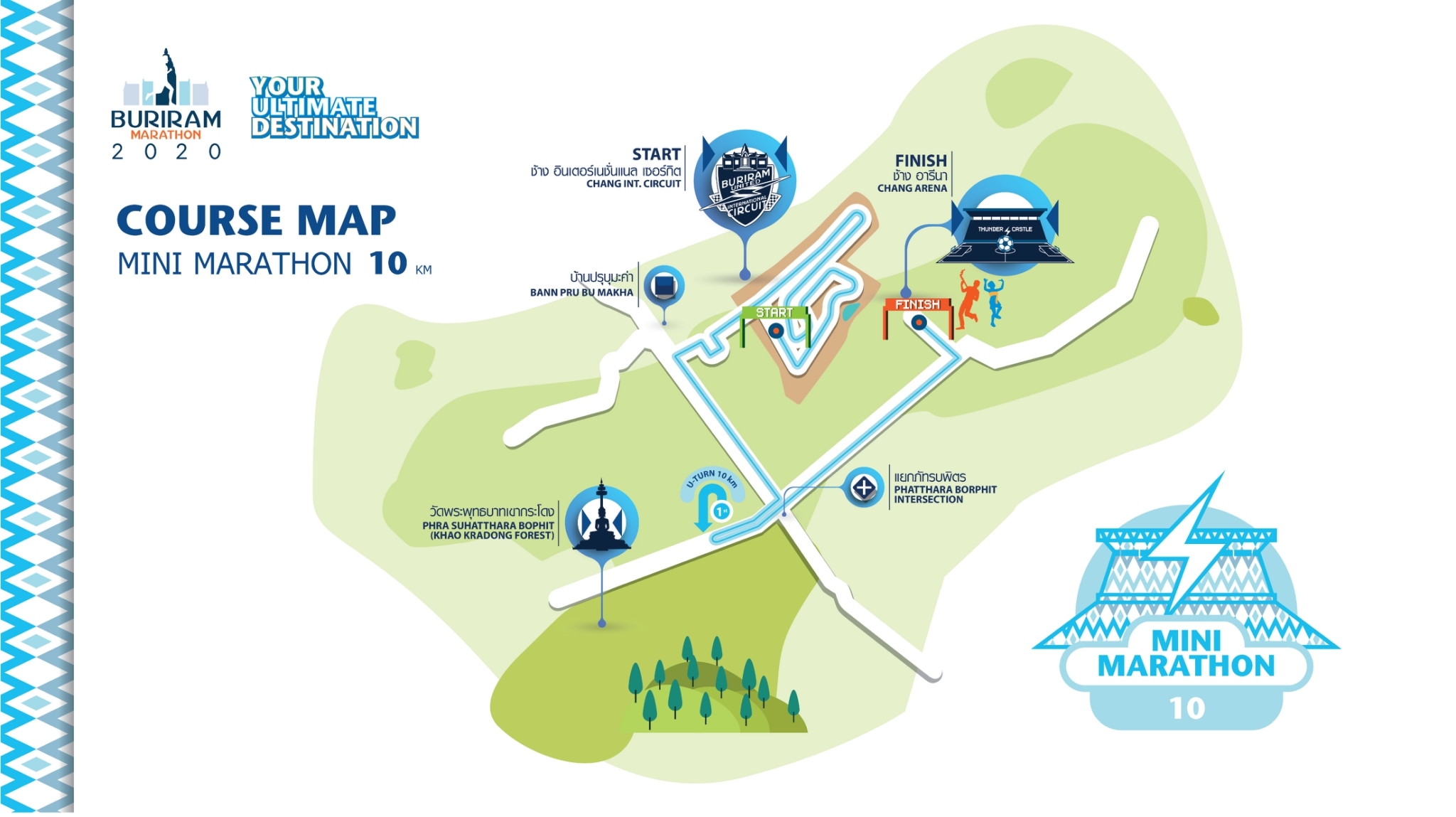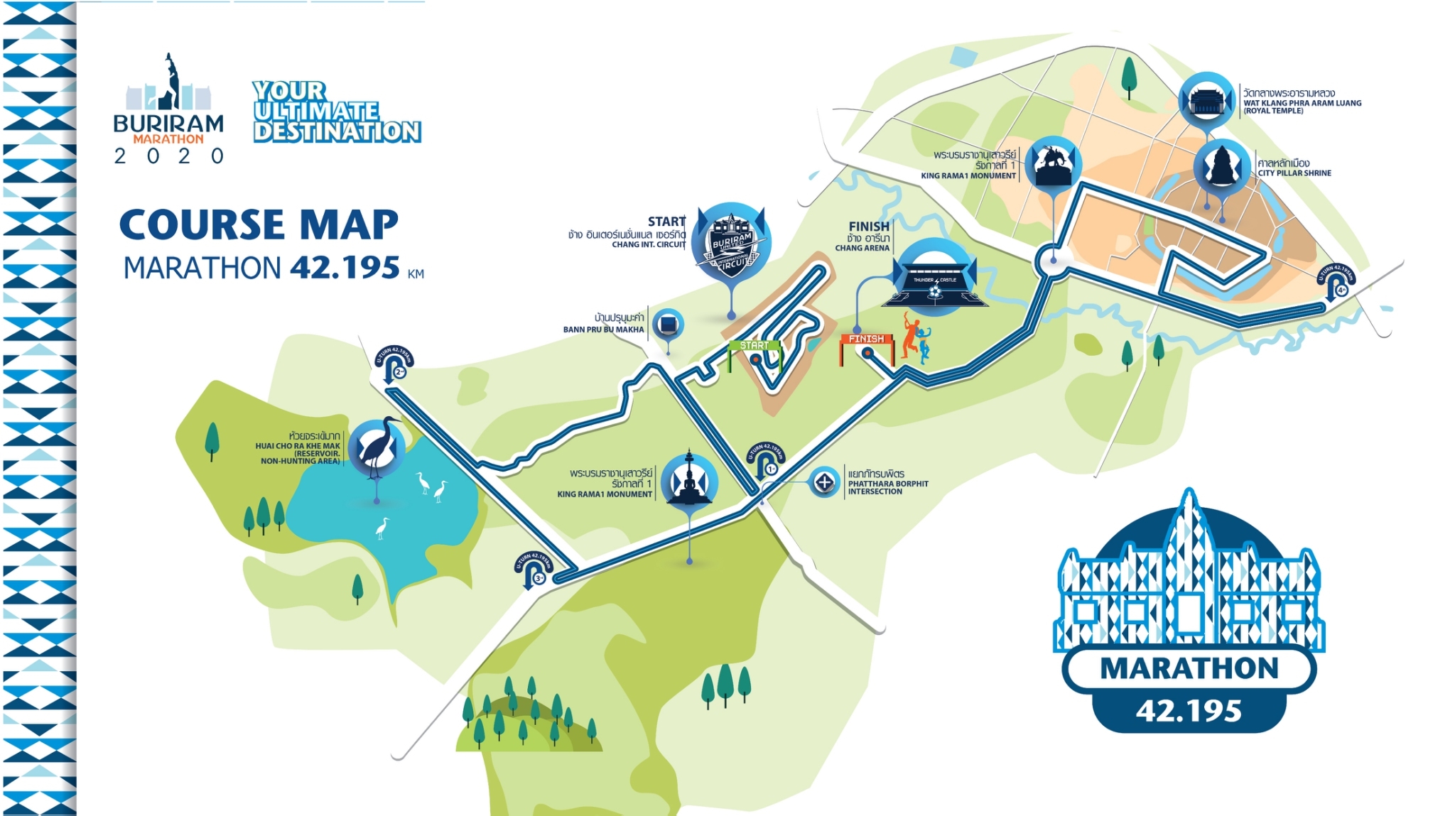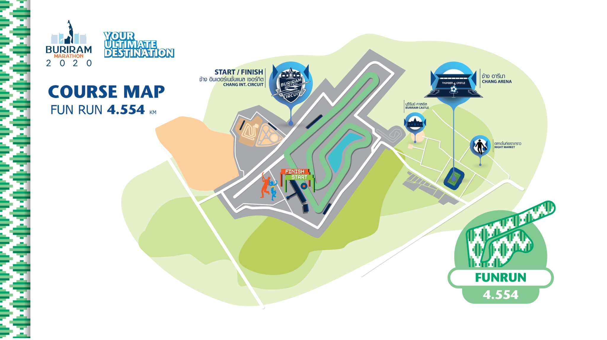 Buriram Marathon include 4 events : Marathon, Half Marathon, 10K and Fun Run (4.554K)