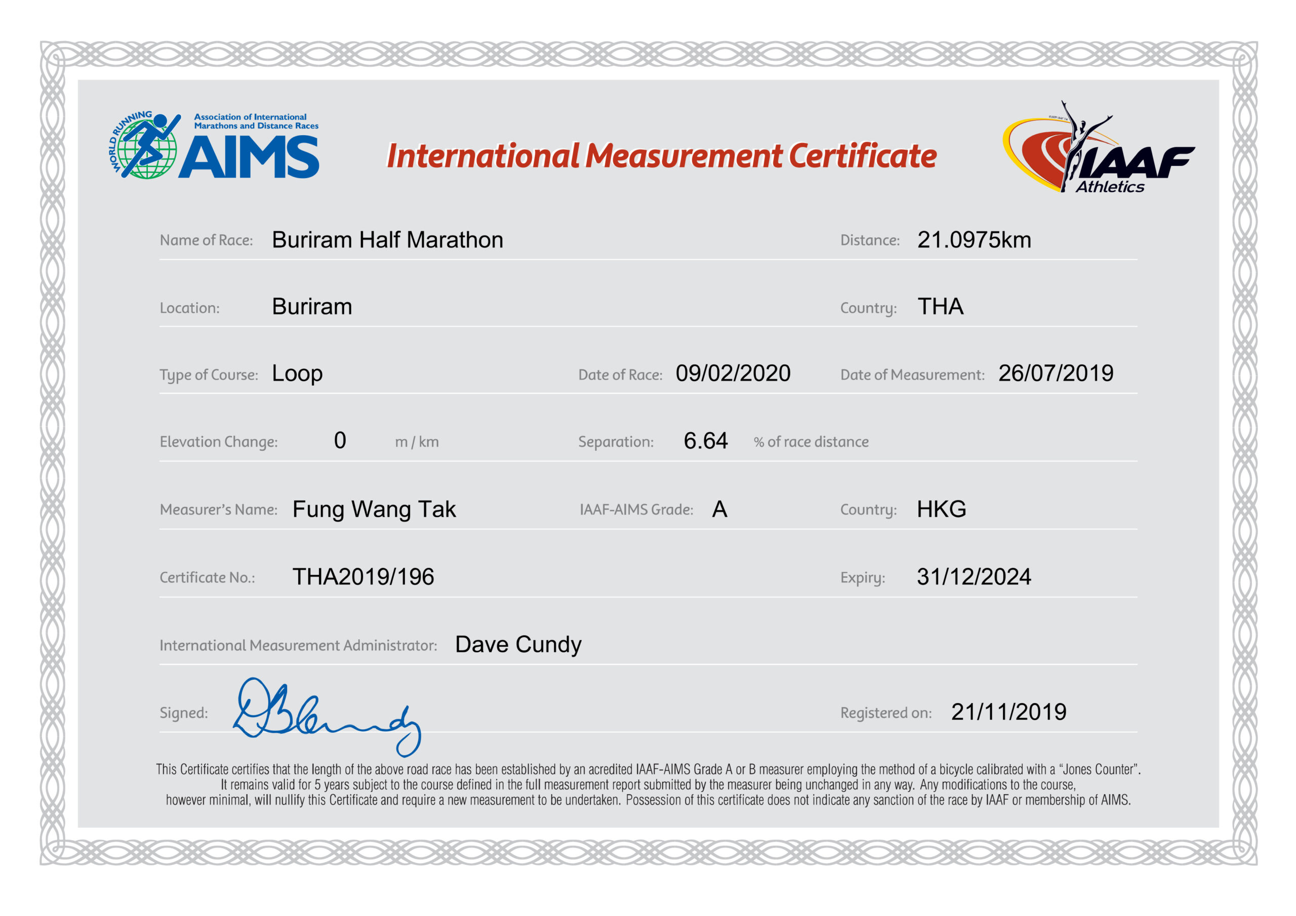 ข้าพเจ้าขอรับรองว่าข้อความข้างต้นเป็นความจริง ซึ่งข้าพเจ้ามีสภาพร่างกายสมบูรณ์พร้อมและสามารถลงแข่งขันในประเภทที่ลงสมัคร และจะปฏิบัติตามกฎกติกาทุกประการโดยไม่เรียกร้องค่าเสียหายใดๆ หากเกิดอันตรายหรือบาดเจ็บทั้งก่อนและระหว่างแข่งขัน อีกทั้งยินดีแสดงหลักฐานพิสูจน์ตนเองต่อผู้จัด และยินยอมให้ผู้จัดถ่ายภาพ ภาพเคลื่อนไหวเพื่อบันทึกการแข่งขัน และถือเป็นลิขสิทธิ์ของผู้จัด ในกรณีที่กิจกรรมนี้ต้องยกเลิกทั้งหมดหรือส่วนใดส่วนหนึ่ง โดยสืบเนื่องจากสาเหตุสุดวิสัยใดๆ ทางธรรมชาติหรือภาวะอื่นใดก็ตาม ข้าพเจ้ารับทราบและยินยอมว่าจะไม่มีการคืนเงินค่าสมัครให้แก่ข้าพเจ้า