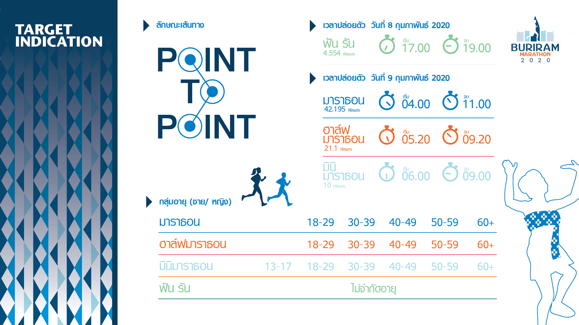 - ต้องมาถึงจุดปล่อยตัวก่อนเวลาปล่อยตัวตามประเภทระยะทางที่สมัคร